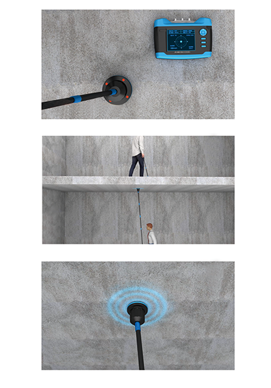 LR-H800 楼板厚度检测仪主要用于混凝土结构(楼板等)或其他非磁体介质的厚度测量。本仪器最突出的特点是在信号接收有效范围内接收探头可以自动寻找发射探头的位置,并锁定中心,大大节省了测量的时间。